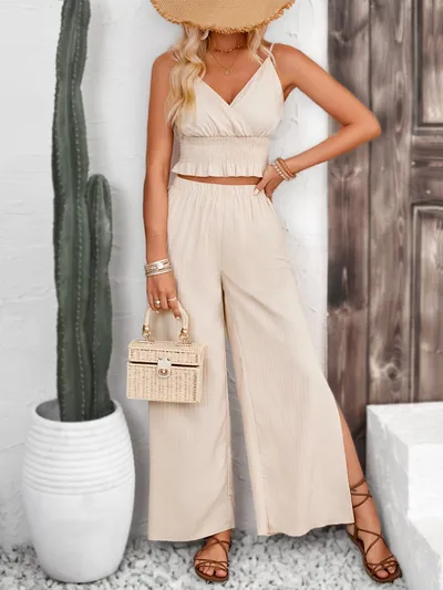 Smocked Surplice Cami and Wide Leg Pants Set