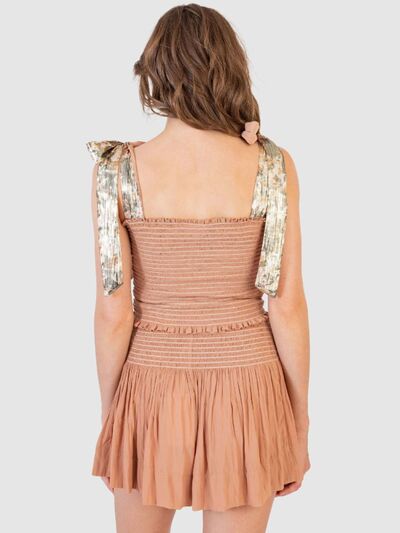 Smocked Tie Shoulder Top and Mini Skirt Set