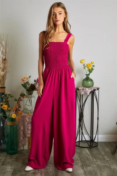 Smocking Top Wide Leg Jumpsuit