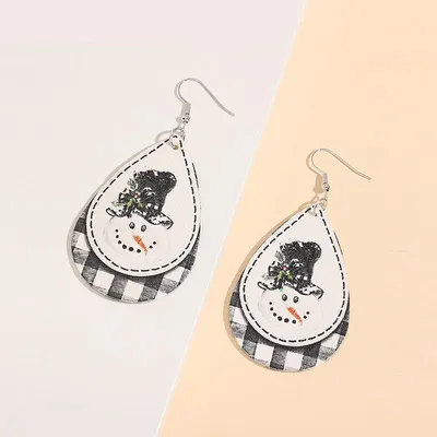 Snowman PU Leather Dangle Earrings