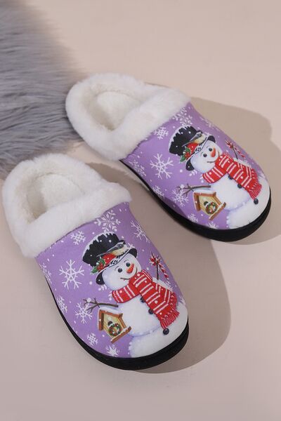 Snowman Round Toe Faux Fur Slippers