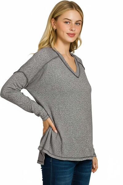 Soft Melange Hacci Exposed Seam Hi-low Tee