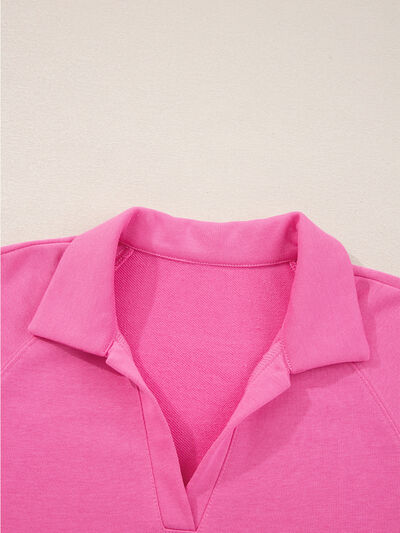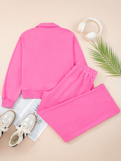Solid Color Collared Pullover and Central Seam Pants Set