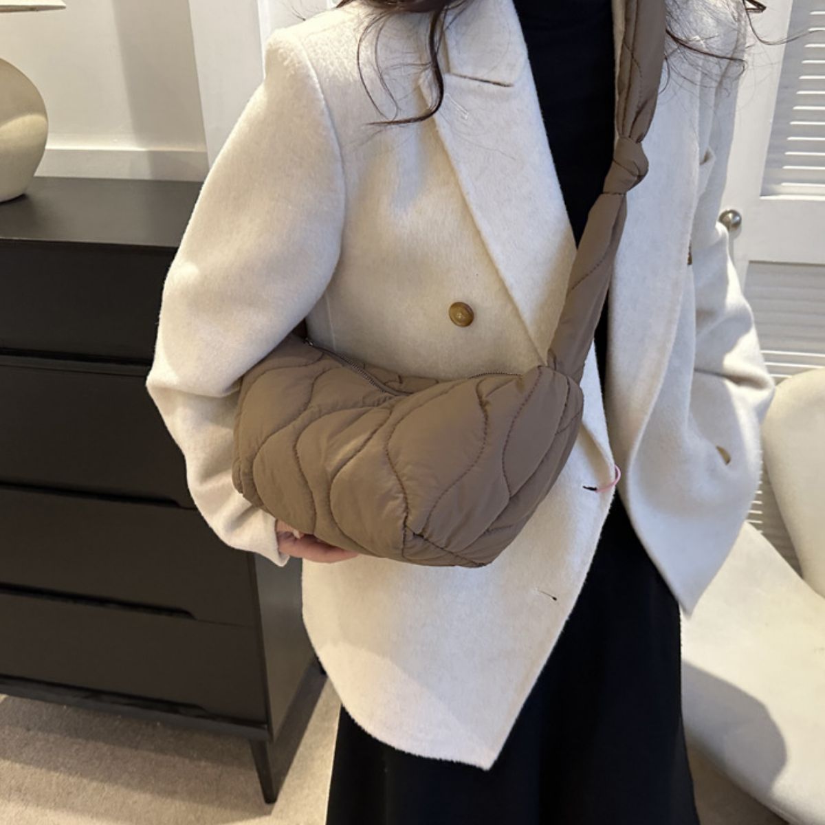 Solid Color Quilted Crossbody Bag
