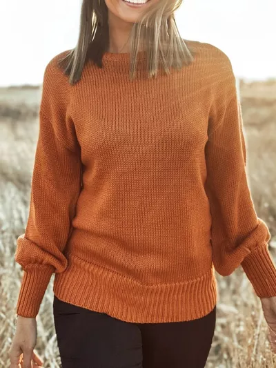 Solid Color Ribbed Trim Drop Shoulder Sweater