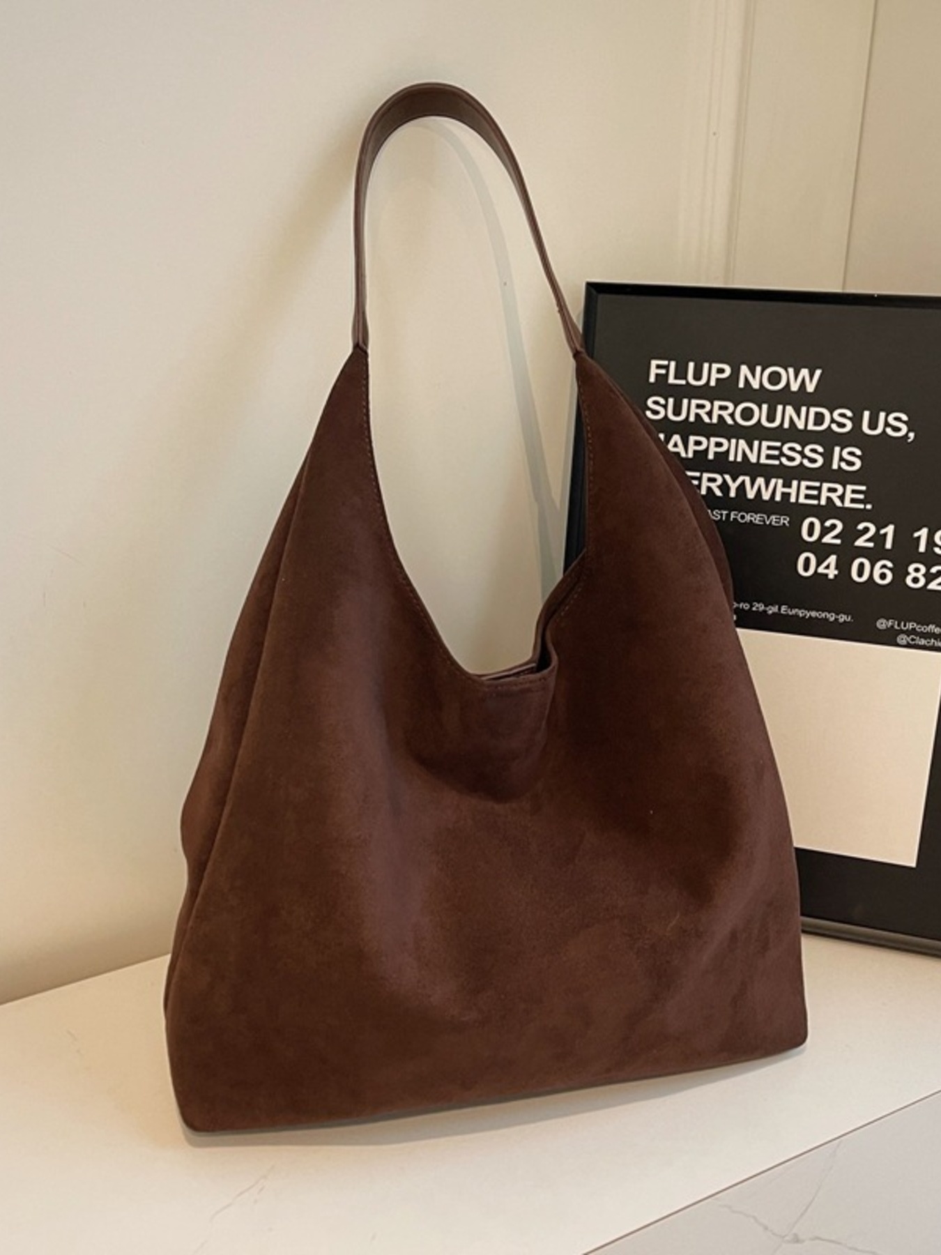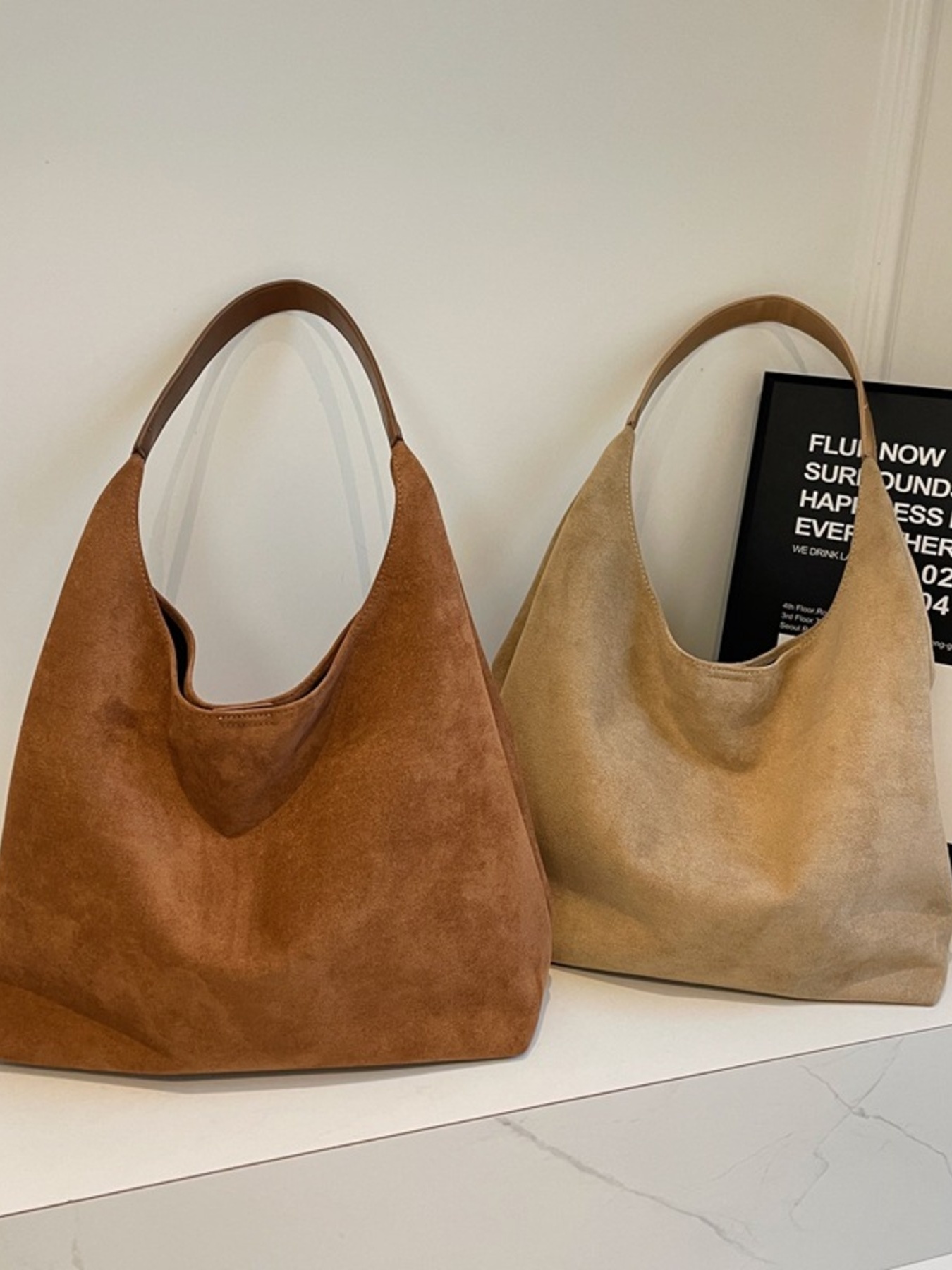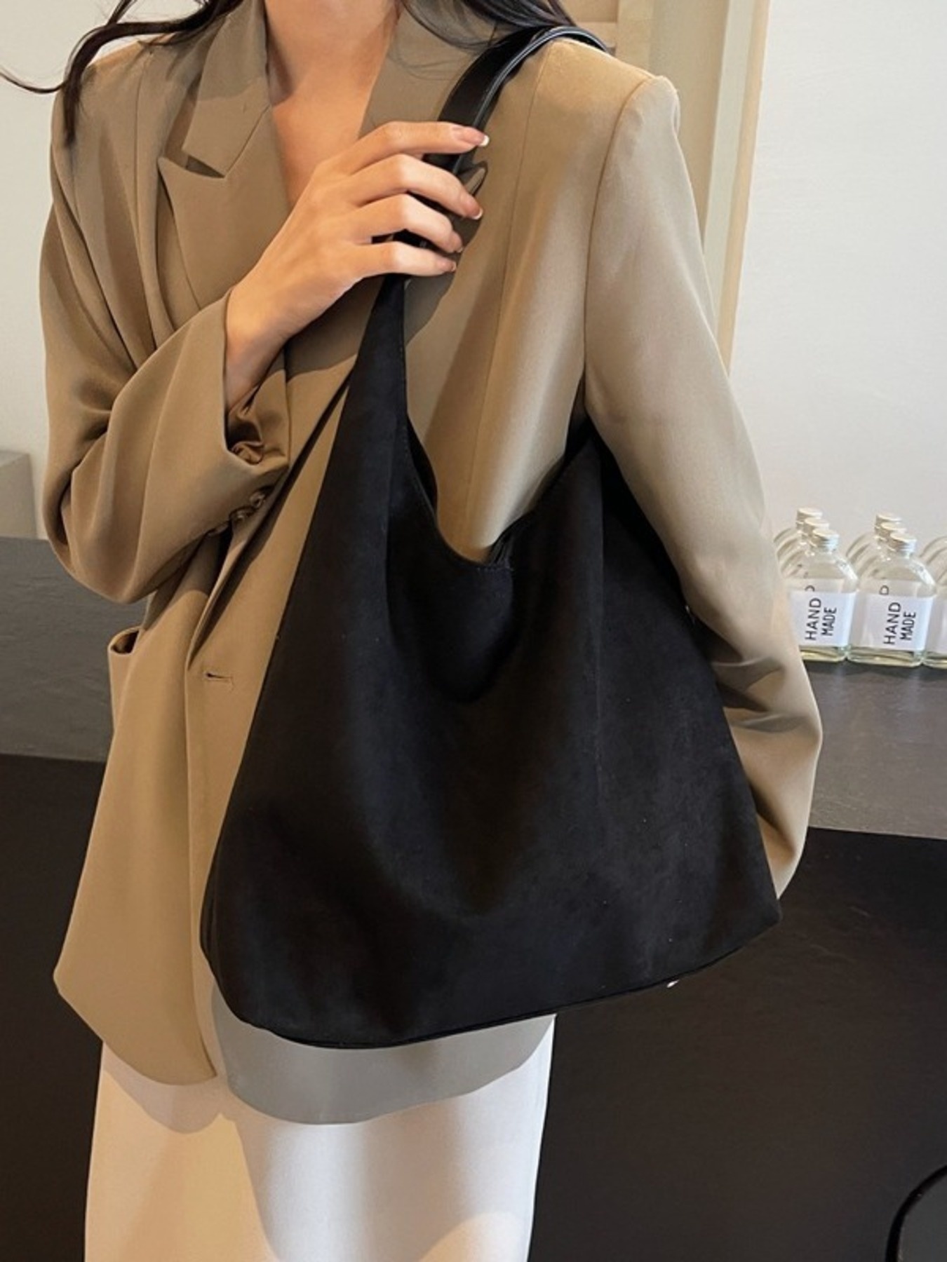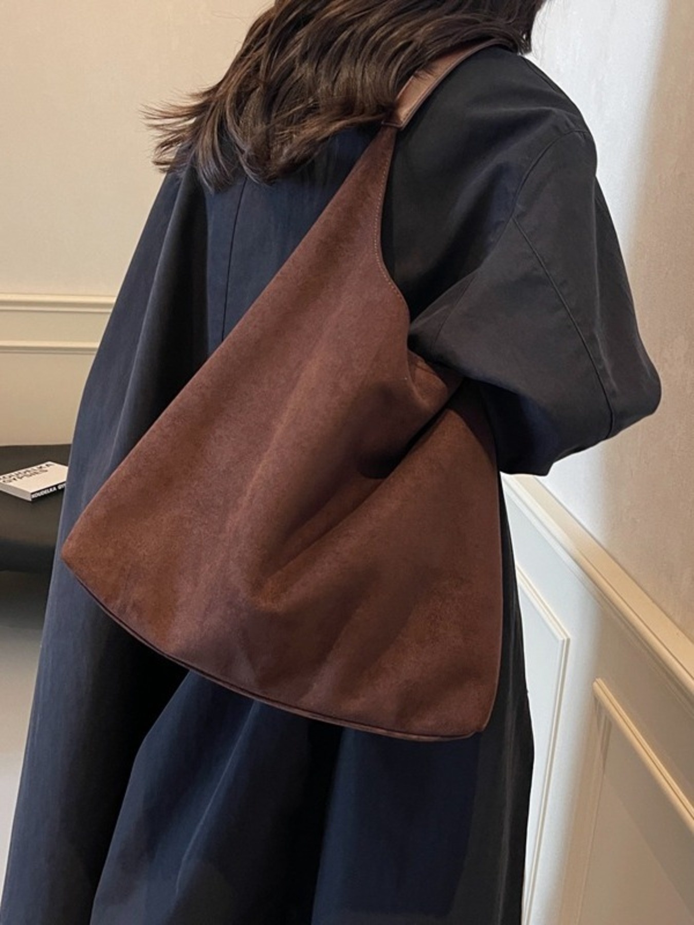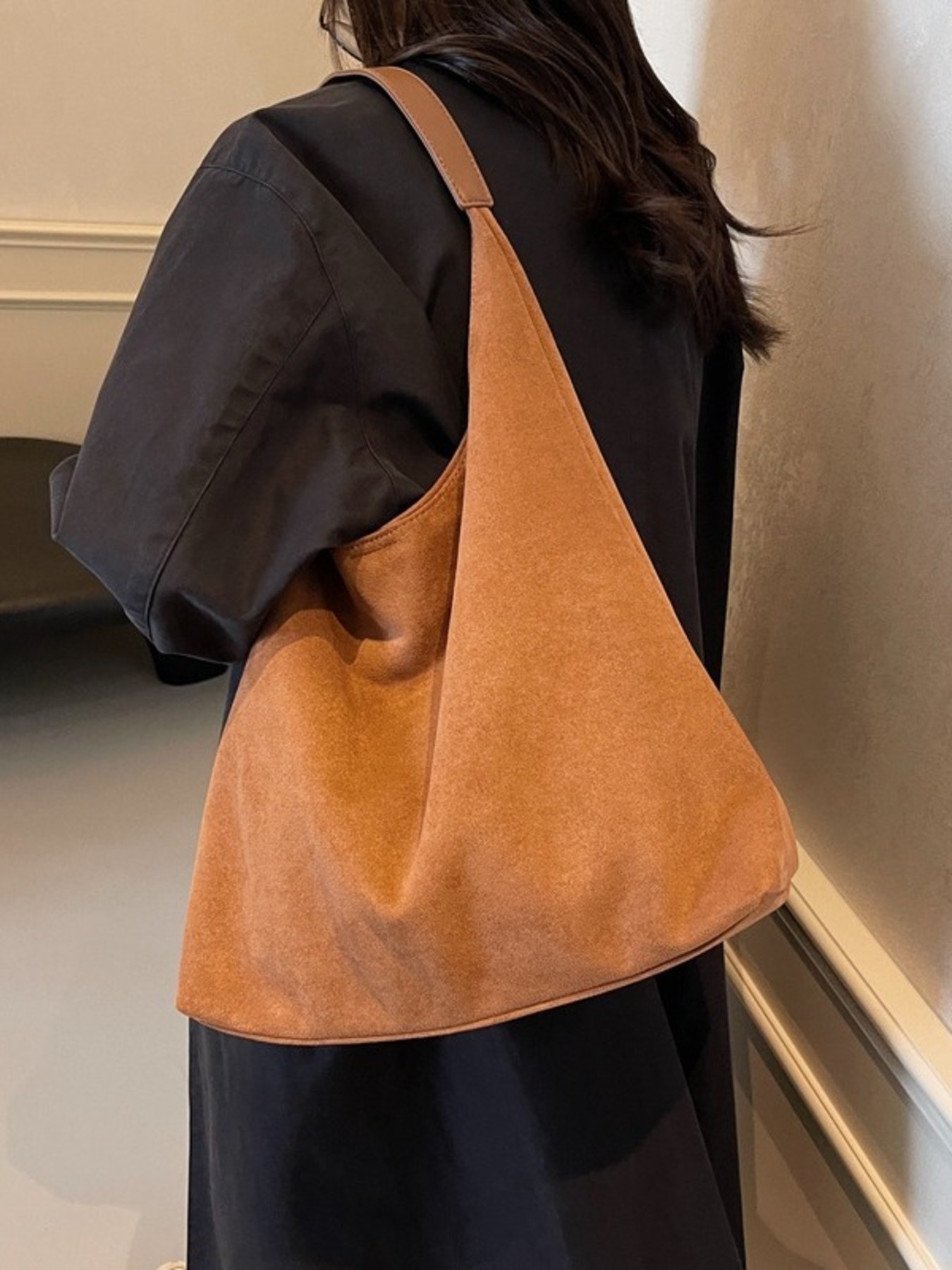 Solid Color Suede Tote Bag