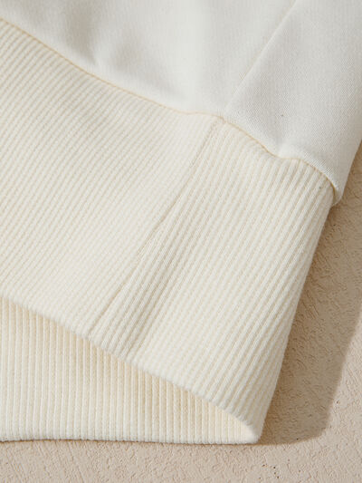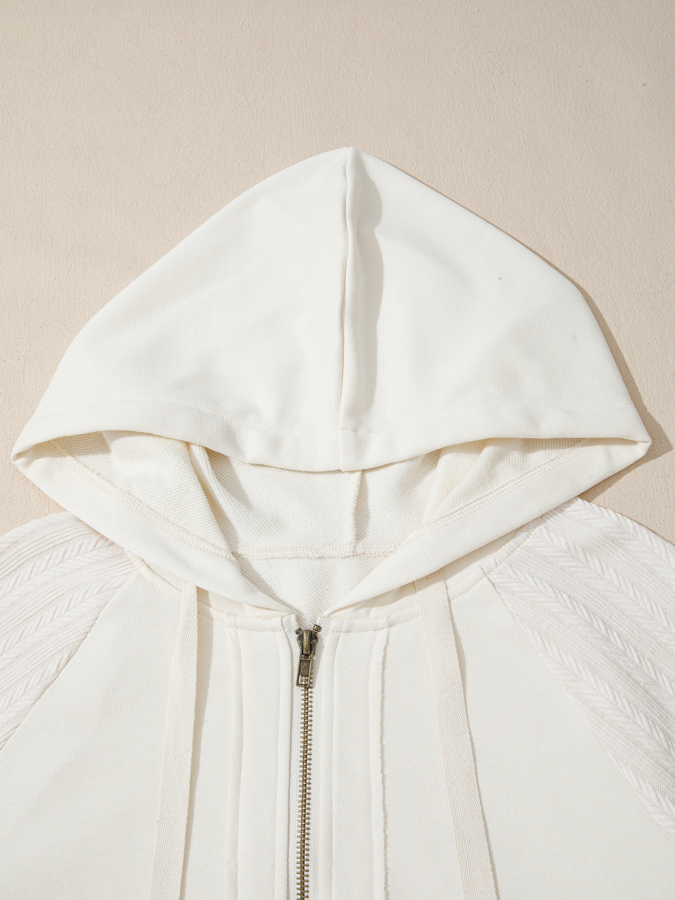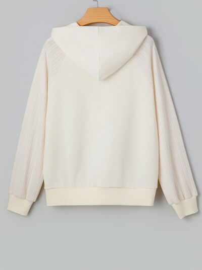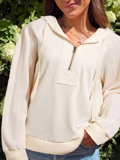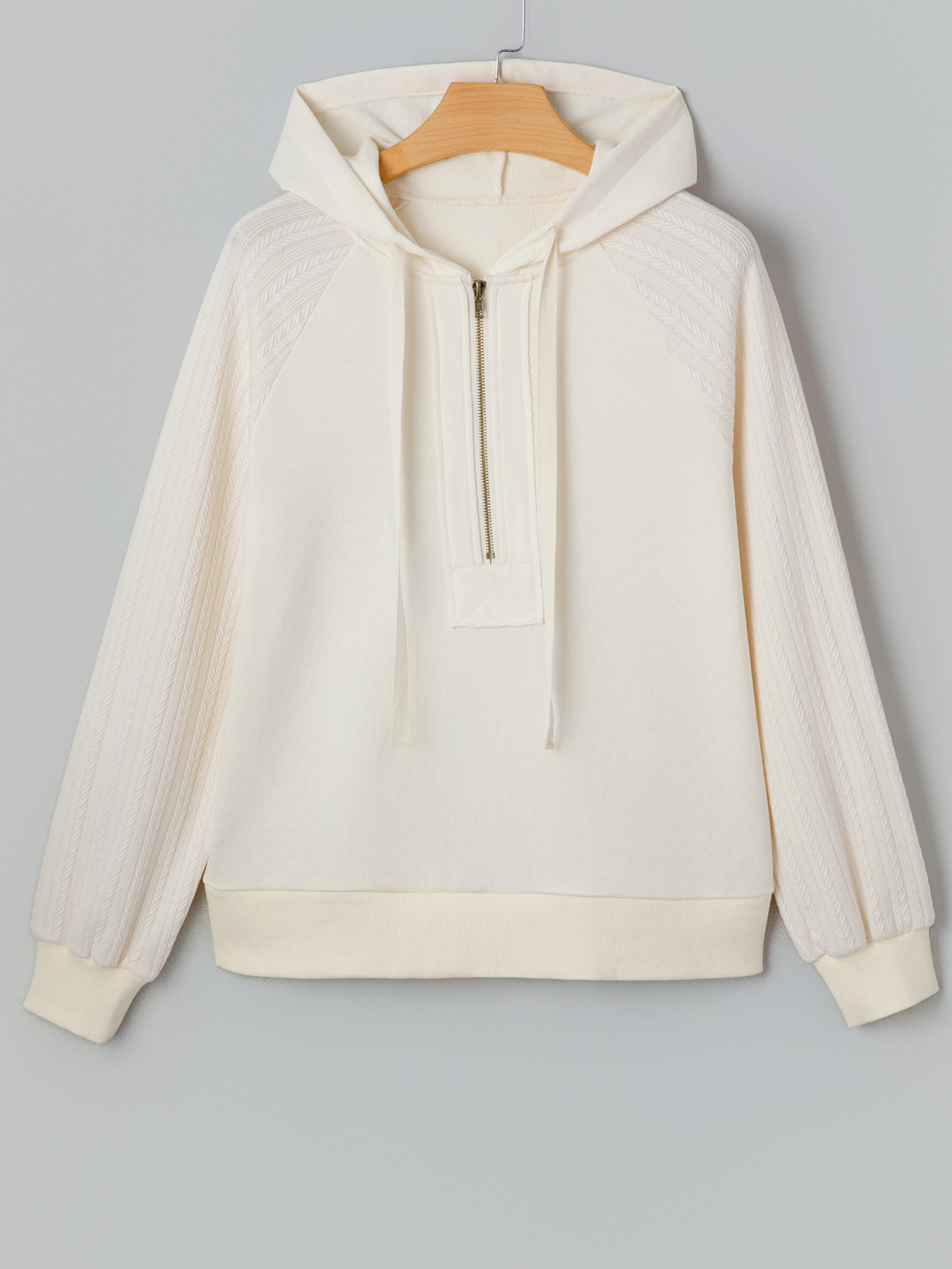 Solid Color Textured Sleeve Patchwork Half Zip Hoodie