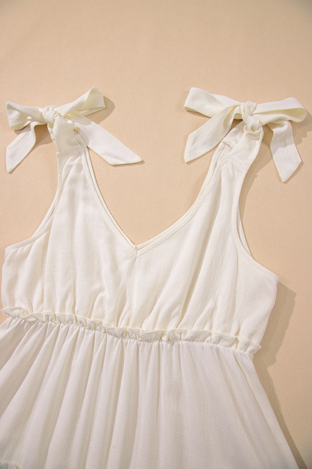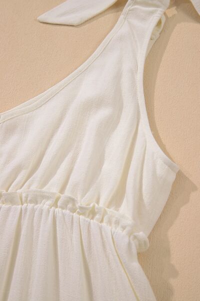 Solid Color Tied Straps Ruffle Tiered Mini Dress