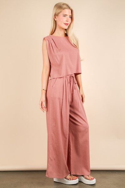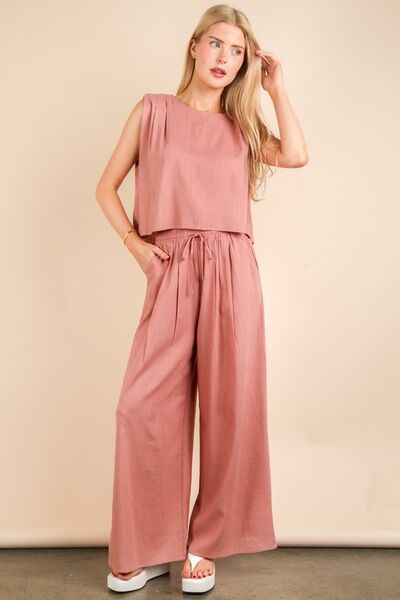 Solid Woven Top & Pants Set
