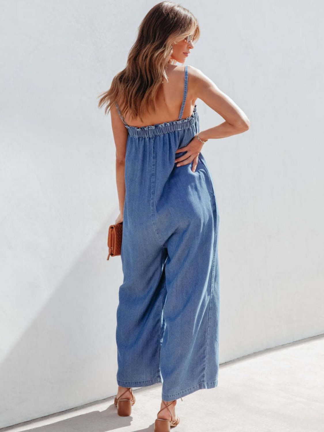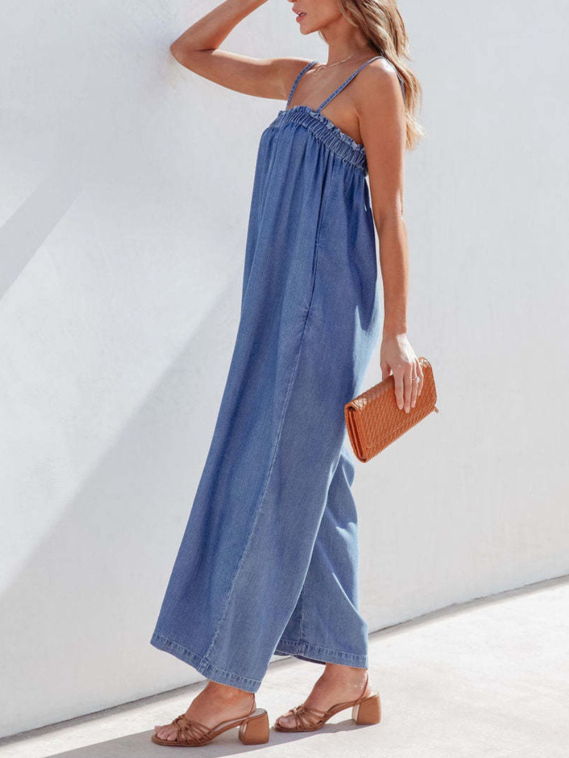 Spaghetti Strap Wide Leg Denim Jumpsuit