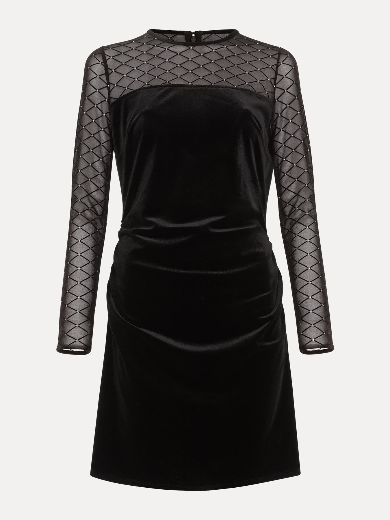 Sparkle Mesh Sleeve Velvet Christmas Party Mini Dress