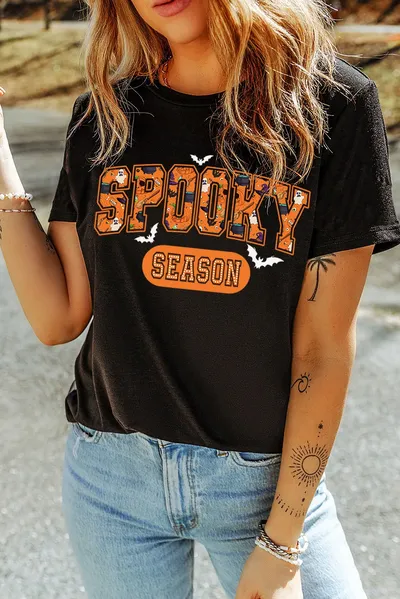 SPOOKY SEASON Round Neck Short Sleeve T-Shirt