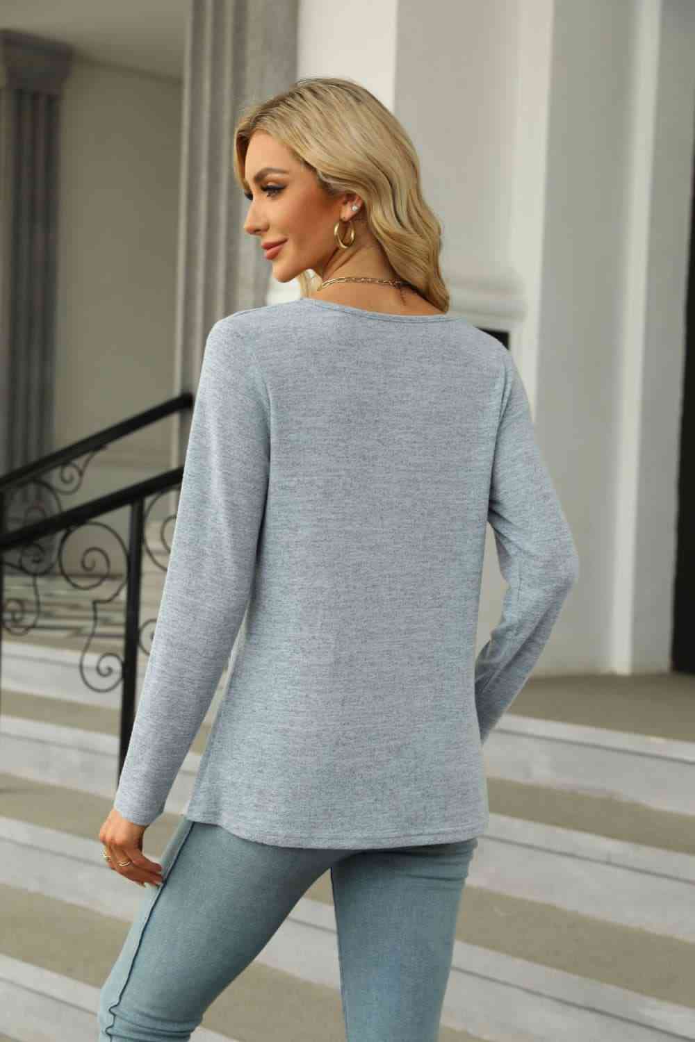 Square Neck Long Sleeve Slit T-Shirt