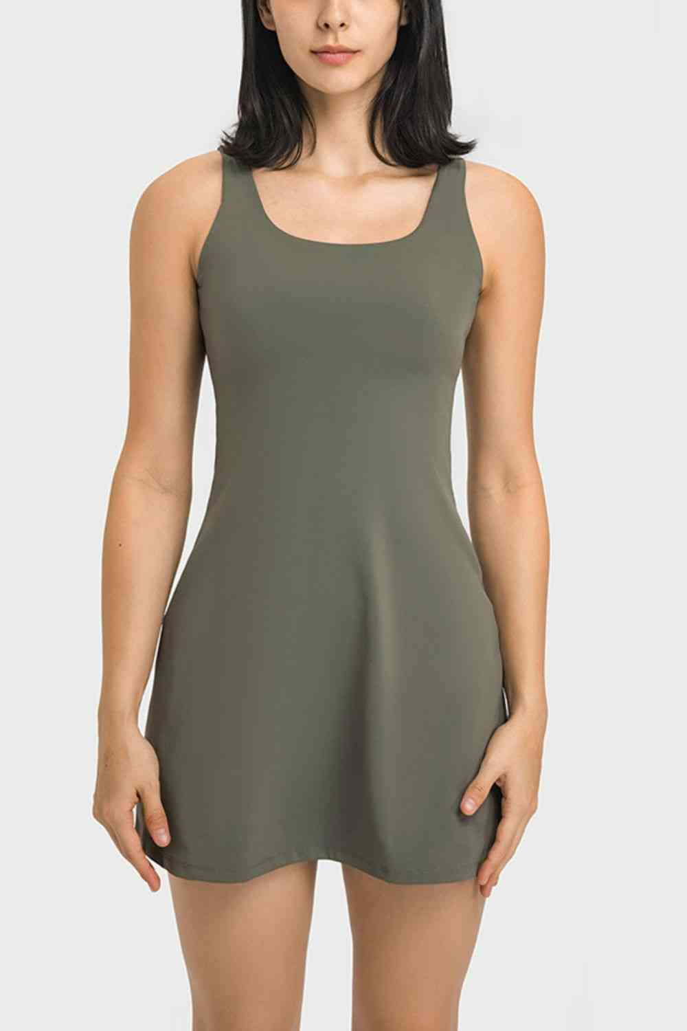 Square Neck Sports Tank Dress with Full Coverage Bottoms