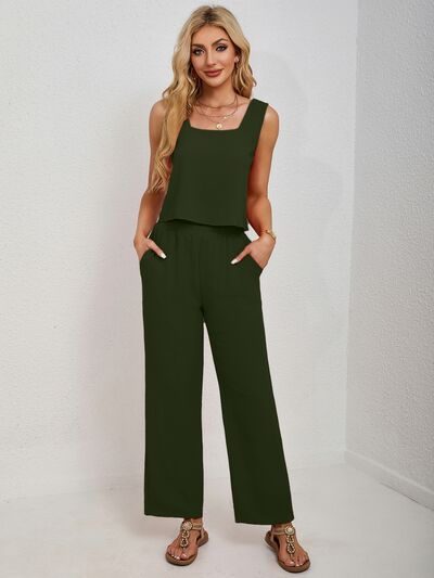 Square Neck Tank and Wide Leg Pants Set