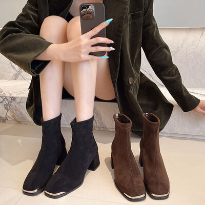 Square Toe Block Heels Boots
