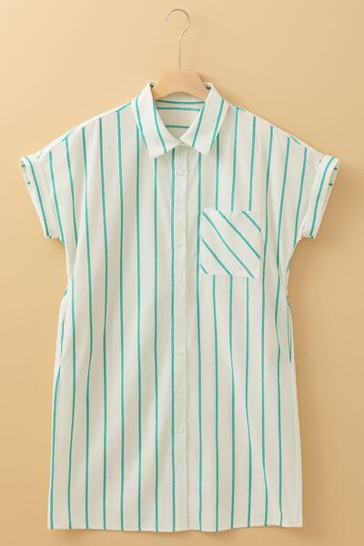 St Patricks Striped Wide Short Sleeve Shift Mini Shirt Dress