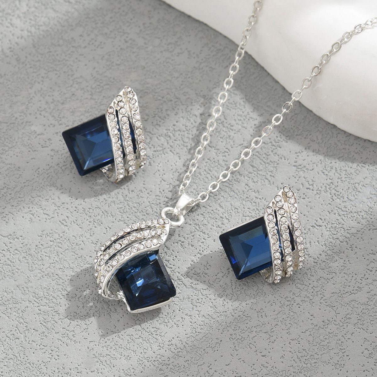 Stainless Steel Crystal Geometric Earrings and Necklace Jewelry Set