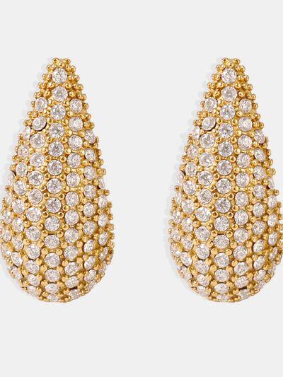 Stainless Steel Inlaid Zircon Teardrop Earrings