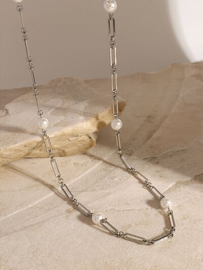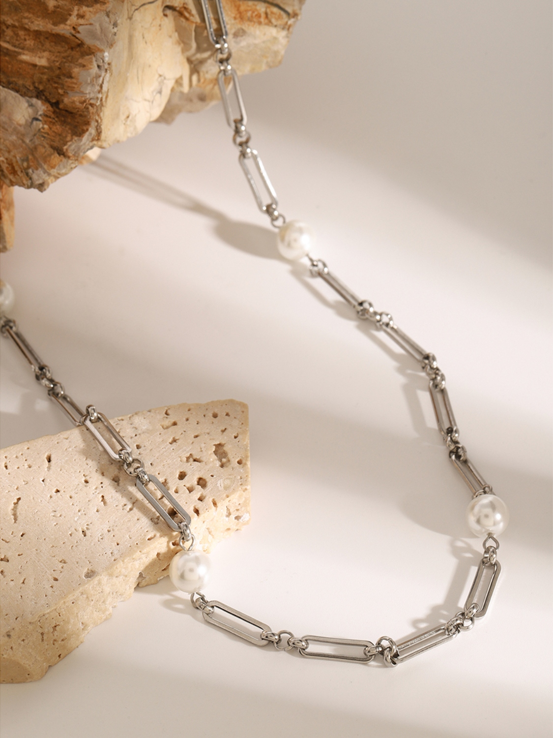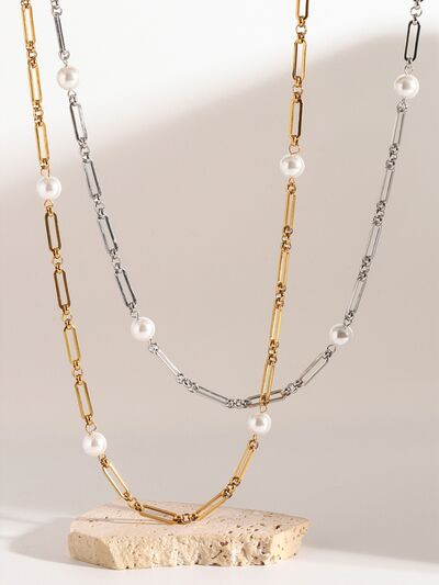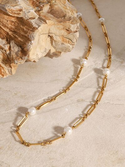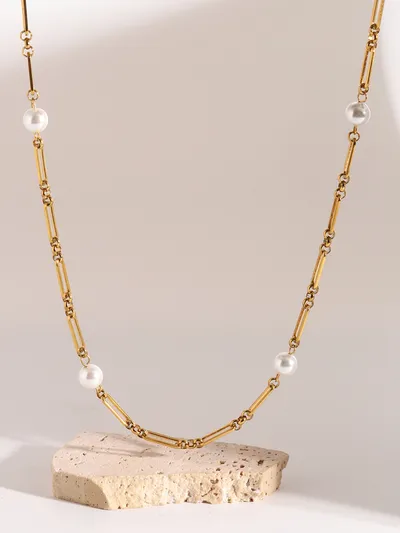 - Material: Synthetic pearl, 18K gold-plated, Stainless steel