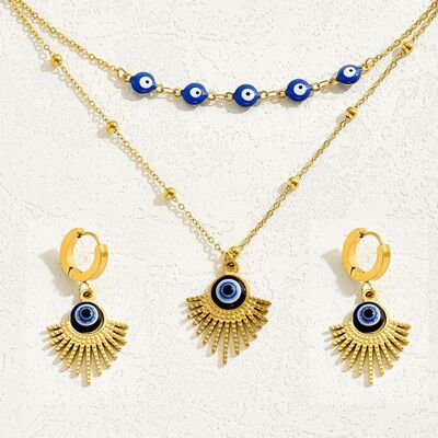 Stainless Steel Resin Necklace and Earrings Jewelry Set