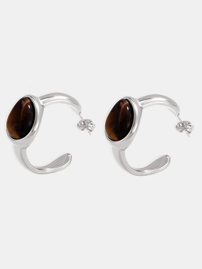 Stainless Steel Tigerite Ring and C-Hoop Earrings Set