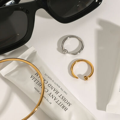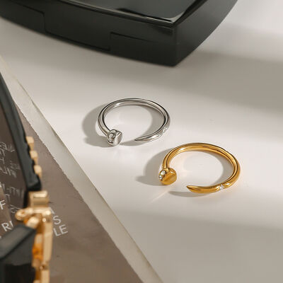 Stainless Steel Zircon Open Ring