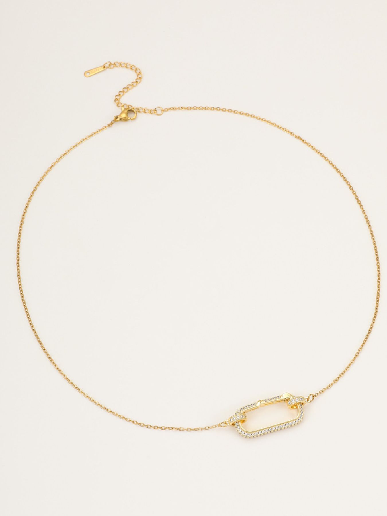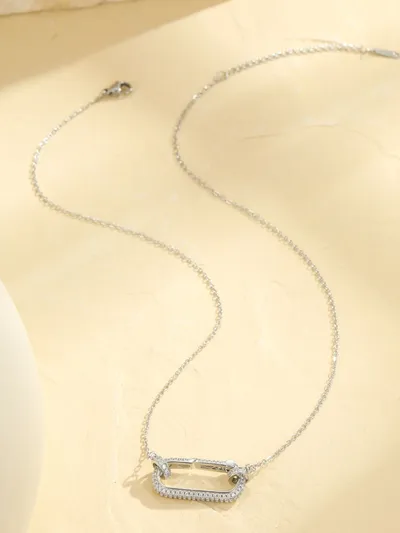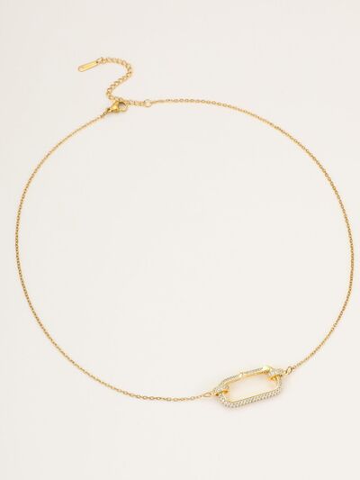 Stainless Steel Zircon Rectangle Pendant Necklace