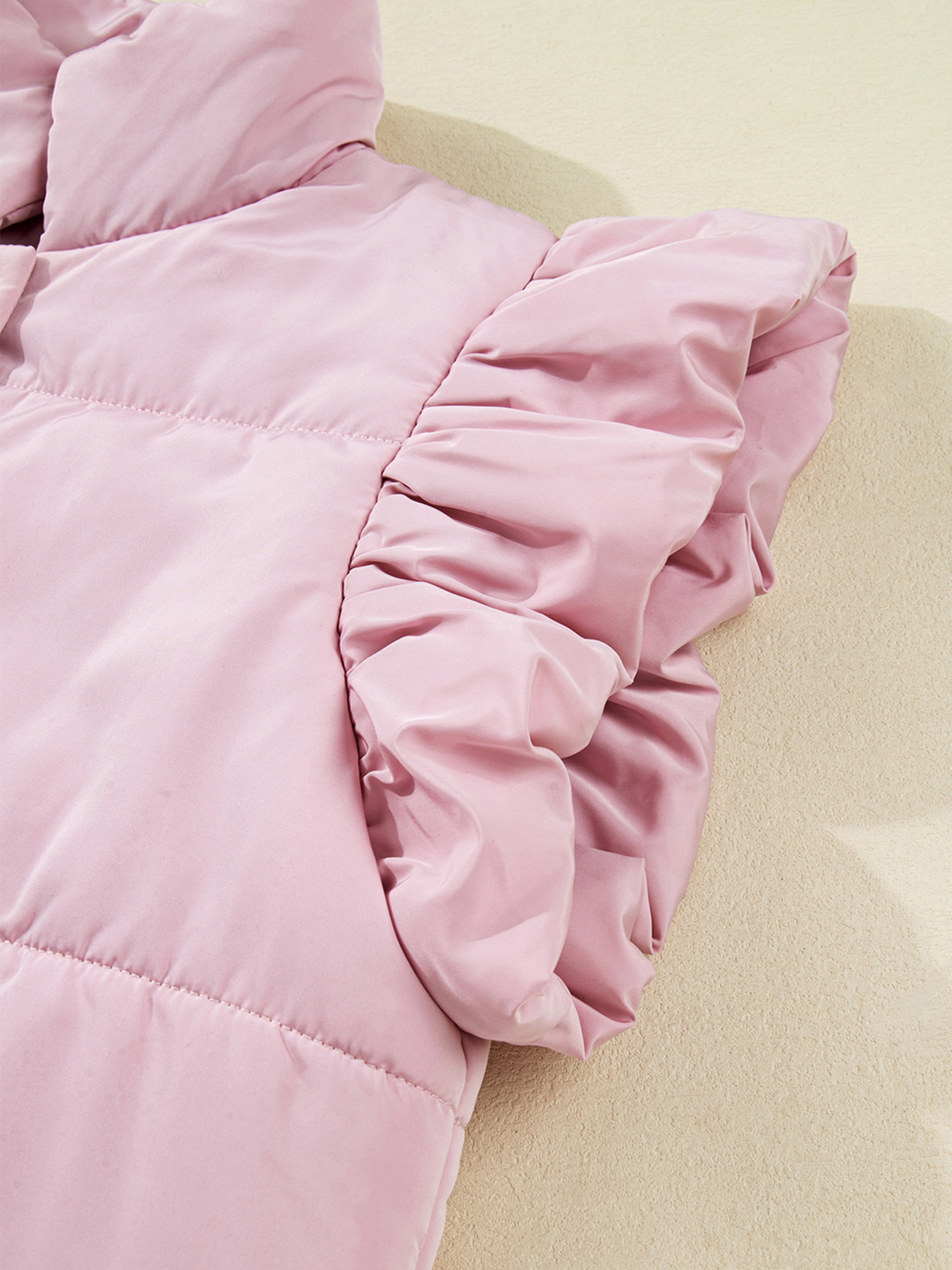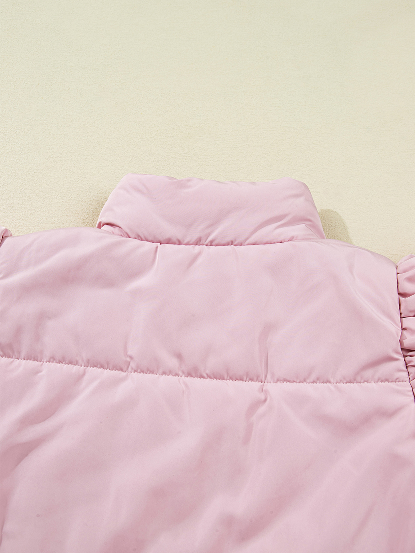 Stand Neck Flutter Sleeve Snap Button Puffer Vest