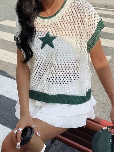 Star Pattern Mesh Knit Short Sleeve Knit Top