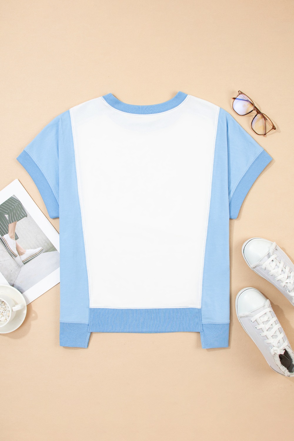 Star Plaid Flower USA Graphic Color Block Crewneck T Shirt