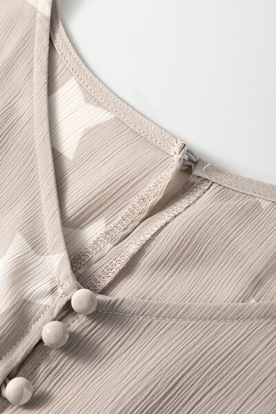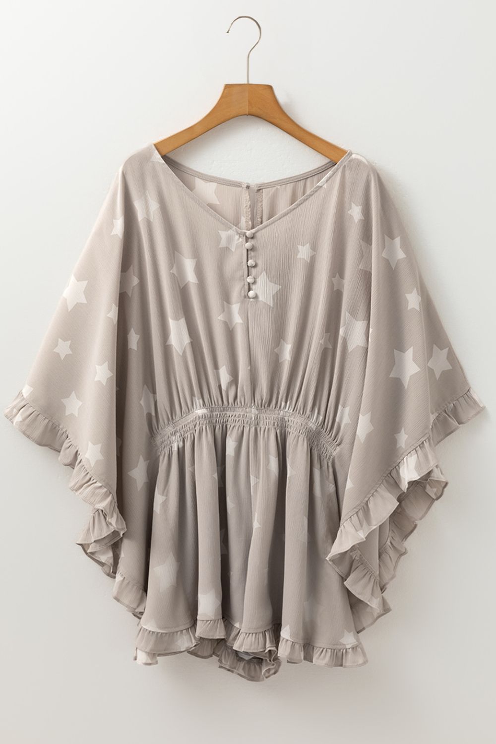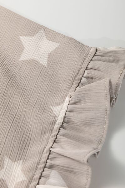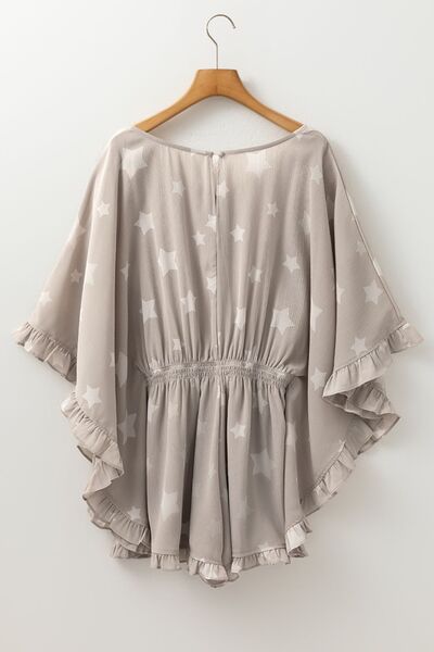Star Print Crinkle Textured Kimono Ruffle Sleeve Romper