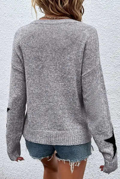 Star Round Neck Dropped Shoulder Sweater
