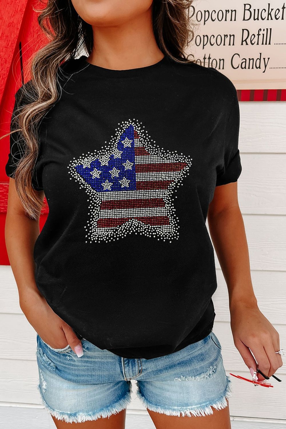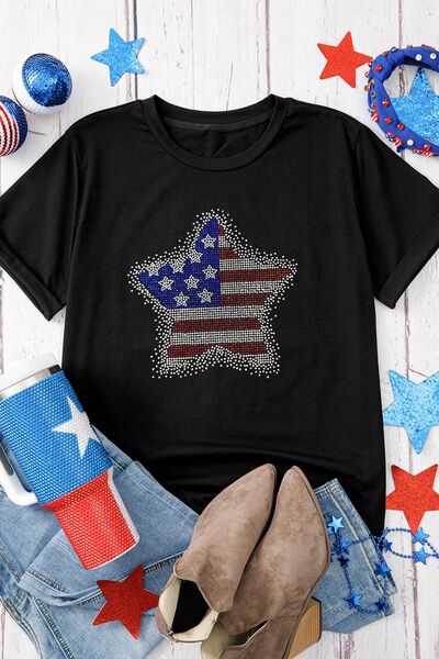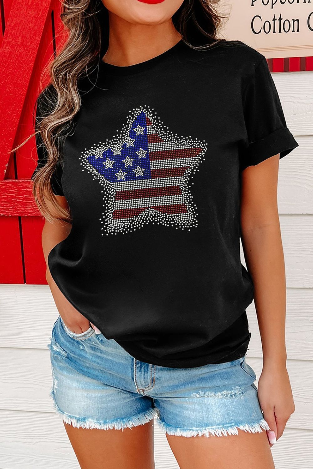 Star Round Neck Short Sleeve T-Shirt