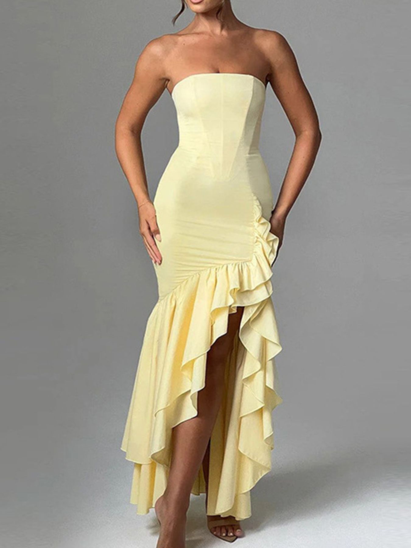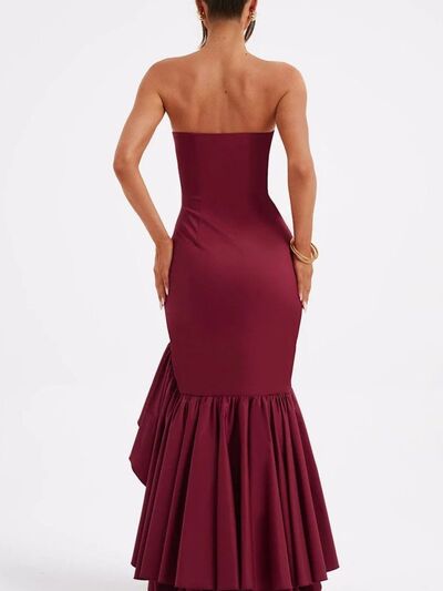 Strapless Ruffle High-Low Bodycon Dress