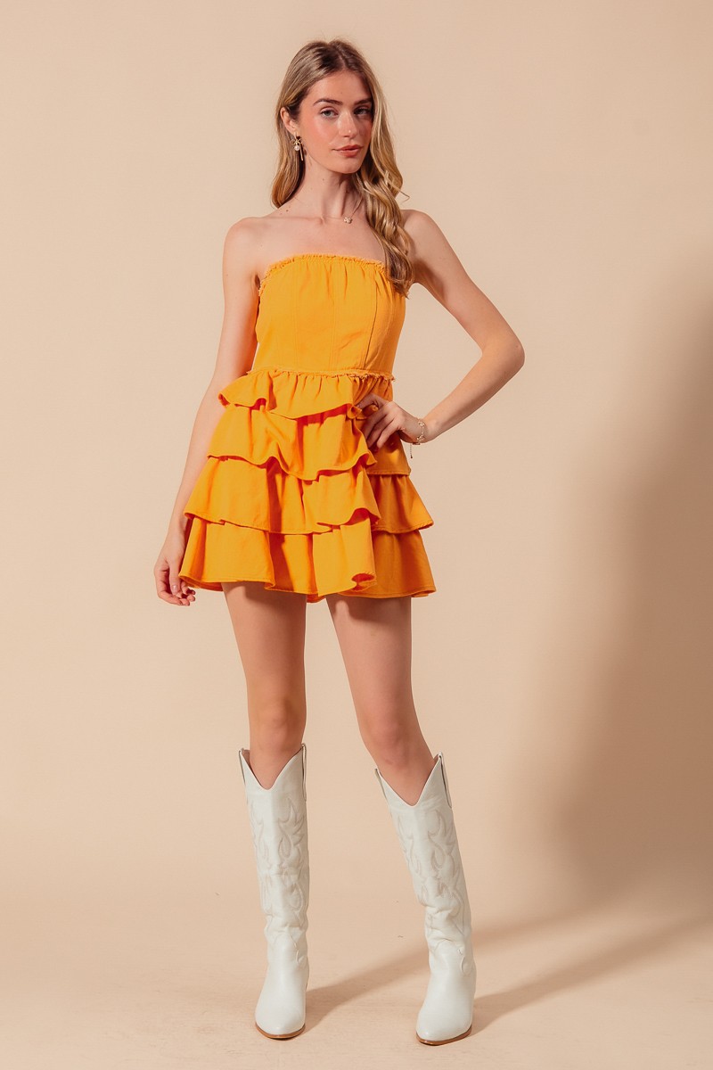 Strapless Ruffle Layered Game Day Cheer Up Dress