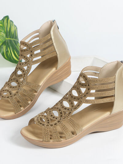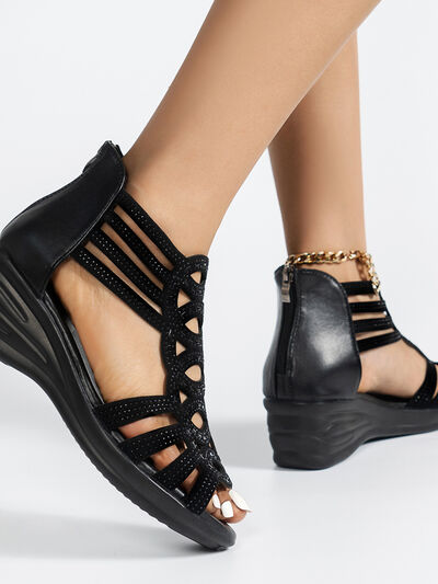 Strappy Wedge Sandals with Rhinestone Details