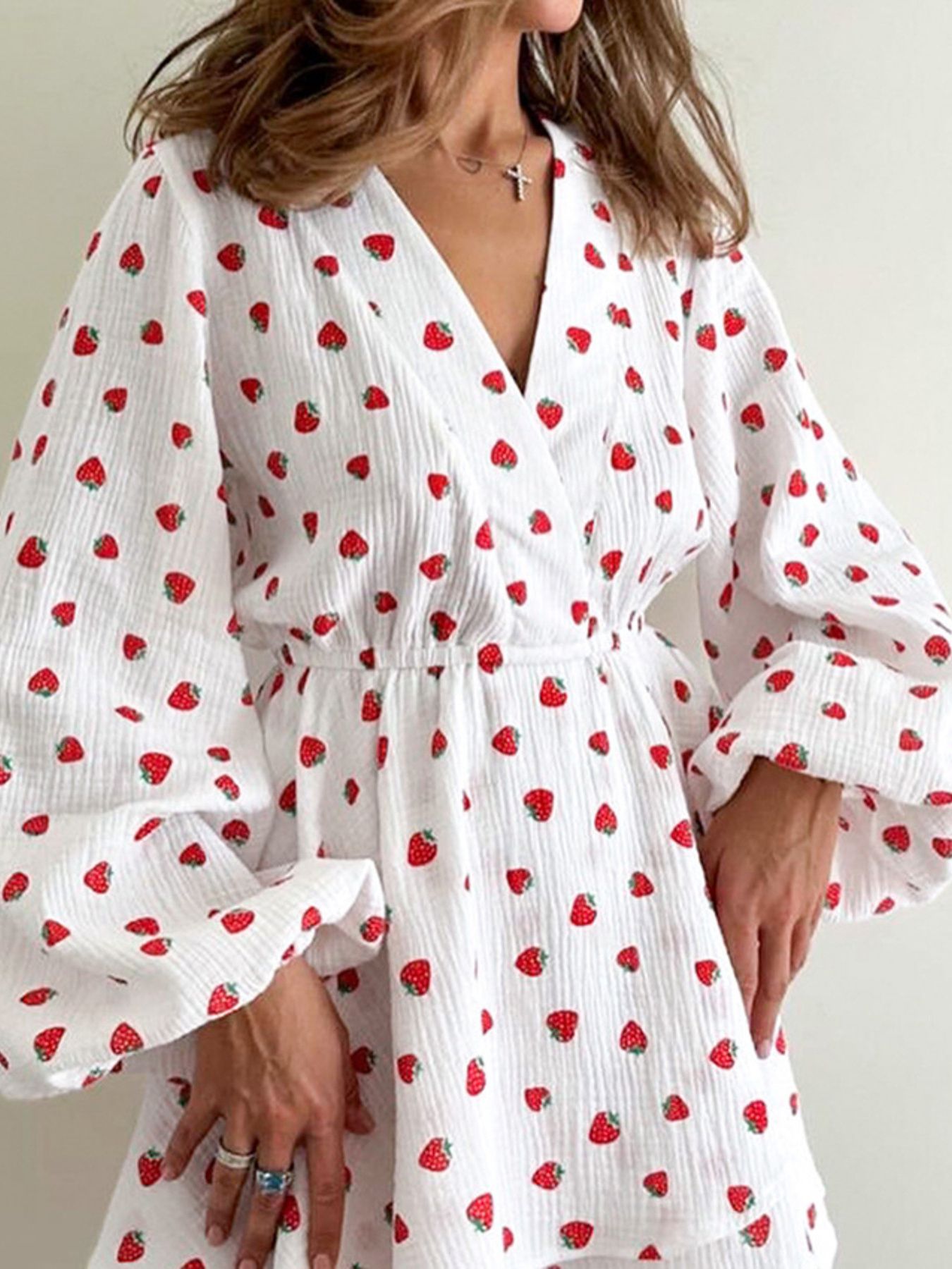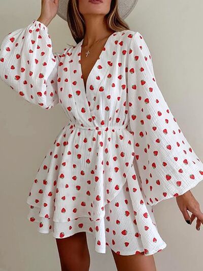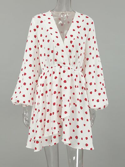 Strawberry Print Long Sleeve Mini Dress