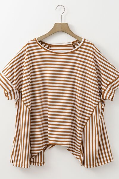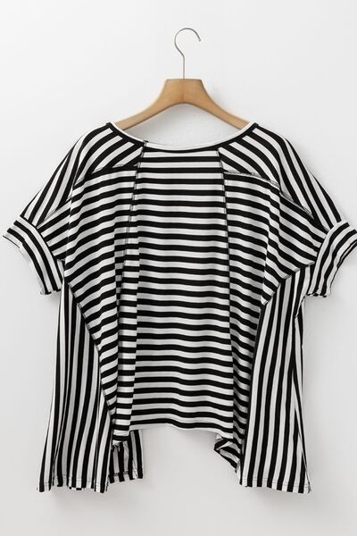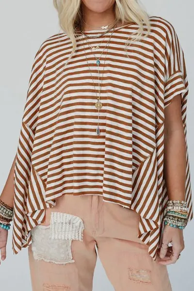 Stripe Batwing Sleeve Round Neck Oversized Top