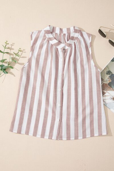 Stripe Button Down Sleeveless Shirt