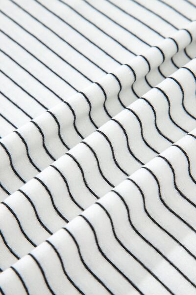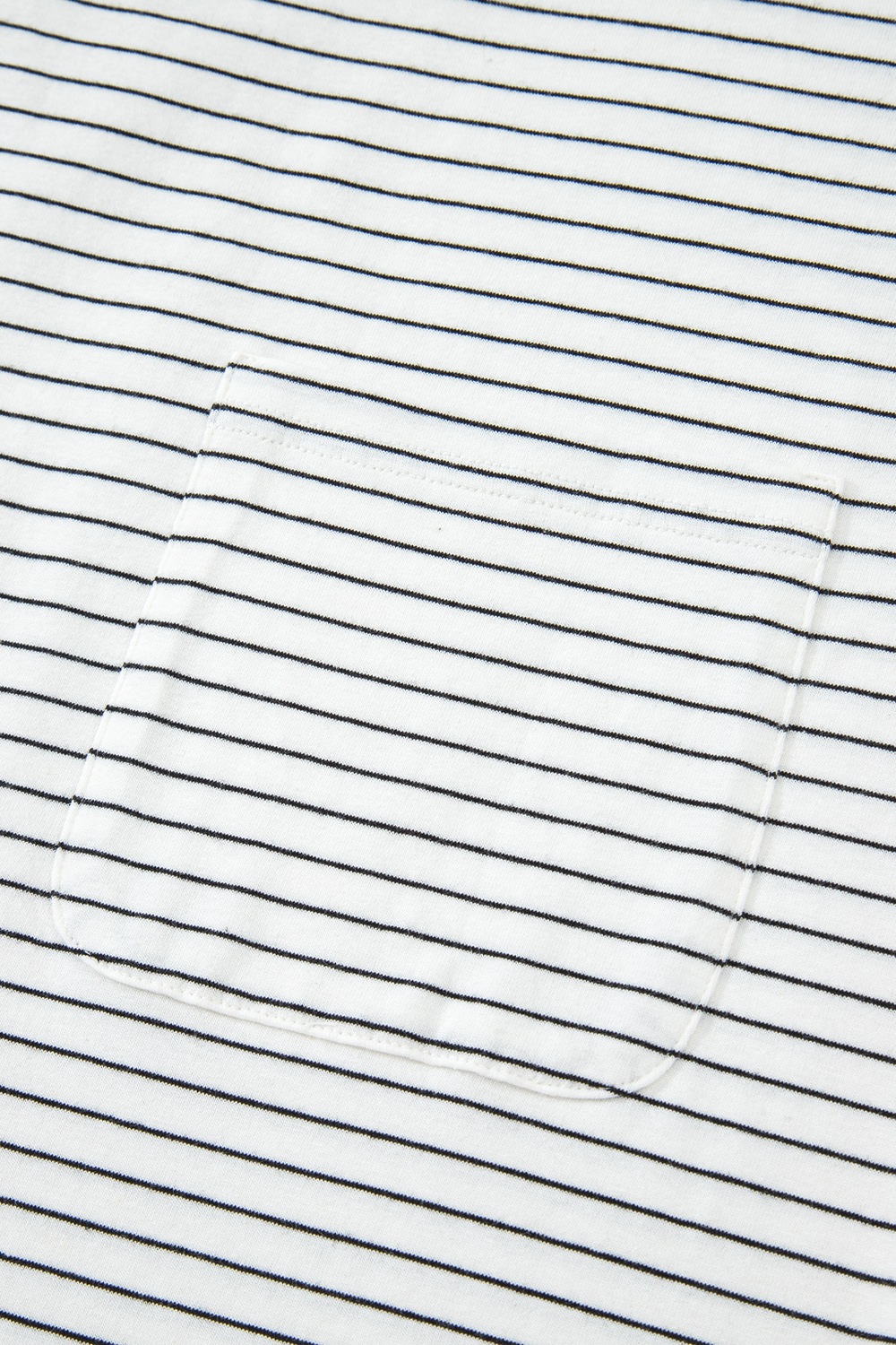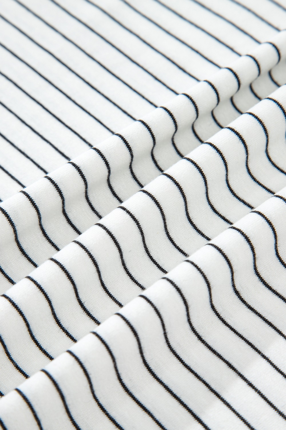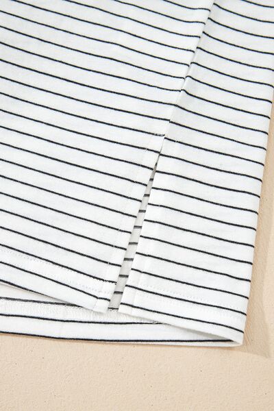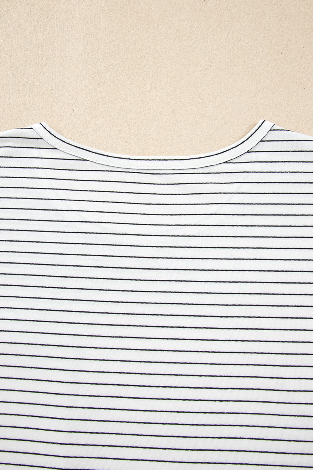 Stripe Cap Sleeve Crew Neck Casual Tee with Chest Pocket