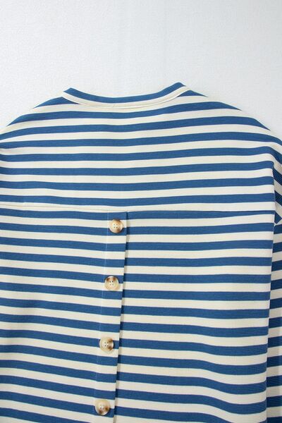 Stripe Chest Pocket Notched Top
