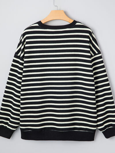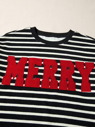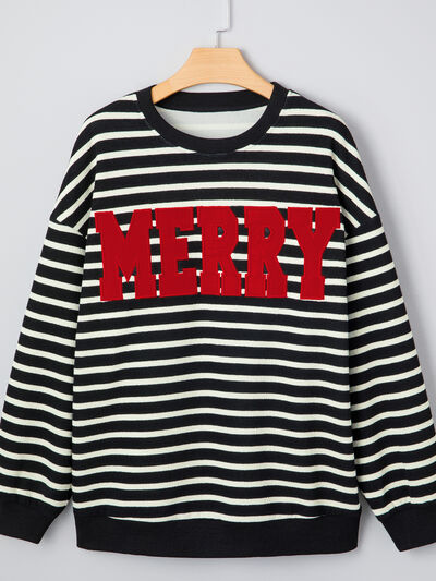 Stripe Contrast MERRY Letter Christmas Print Drop Shoulder Sweatshirt