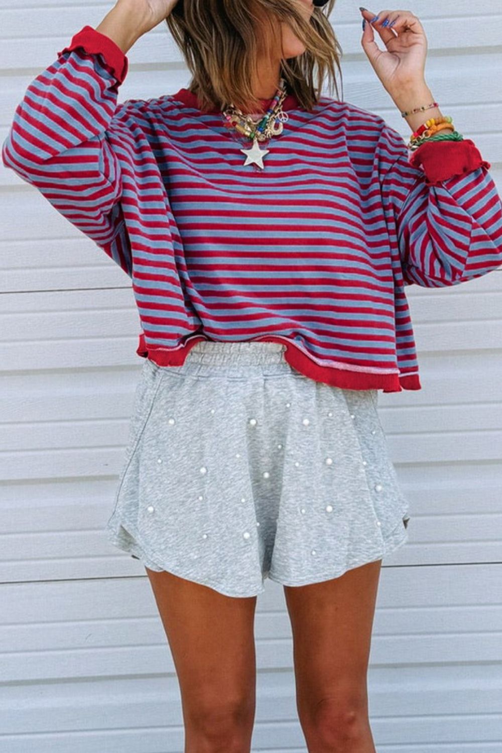 Stripe Exposed Seam Contrast Ribbed Trim Oversize Sweatshirt