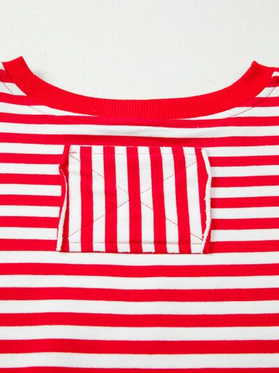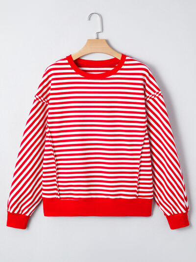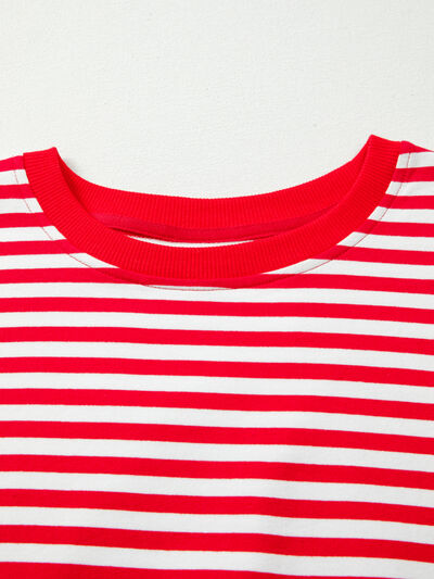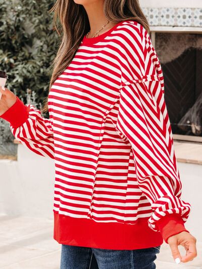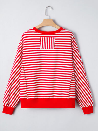 Stripe Exposed Seam Drop Shoulder Casual Top