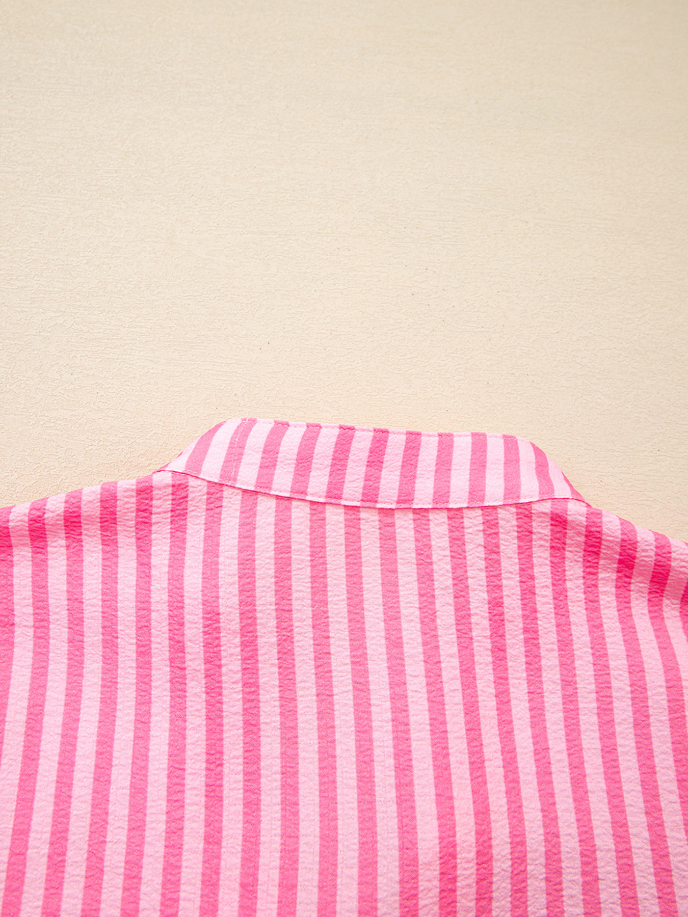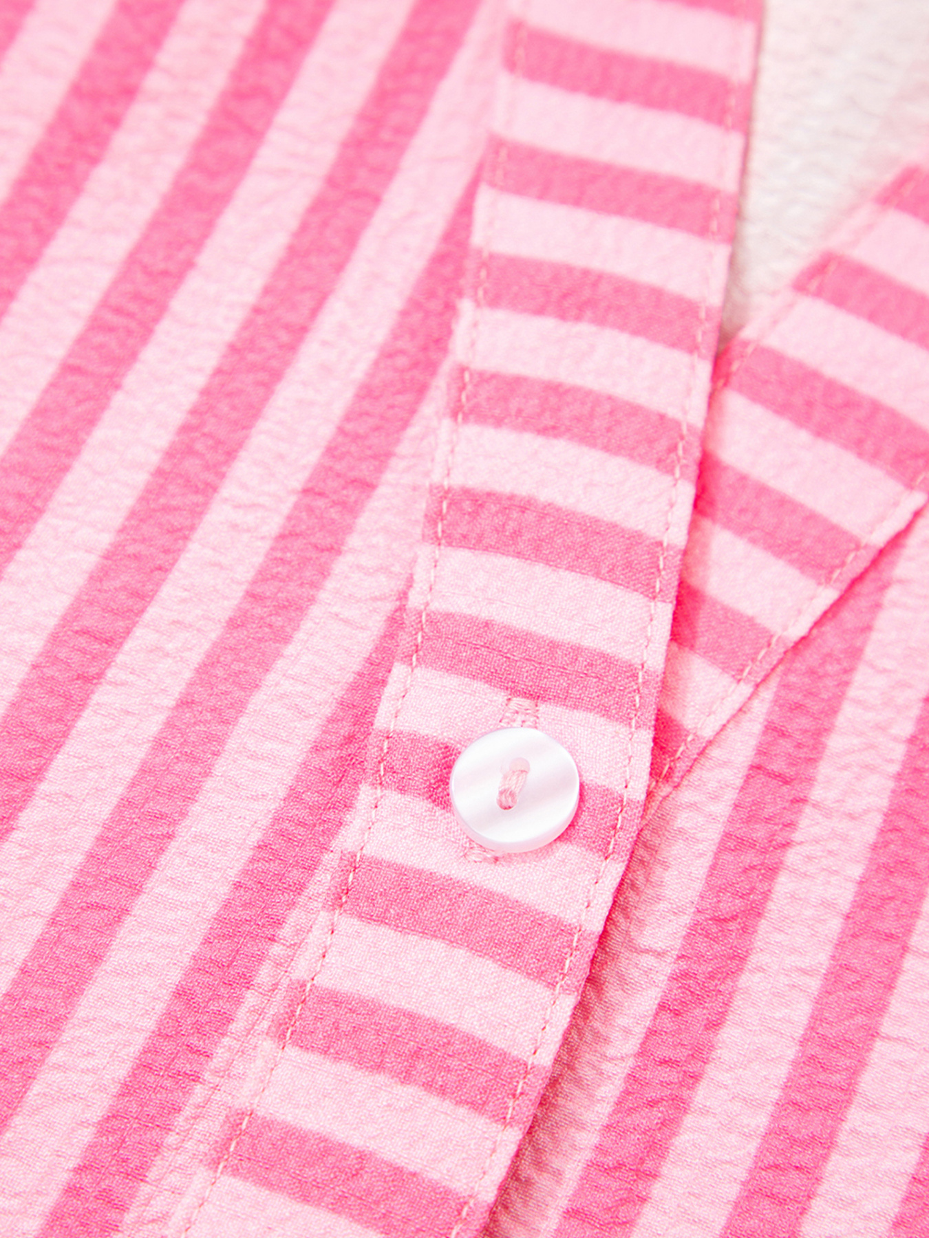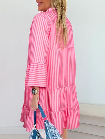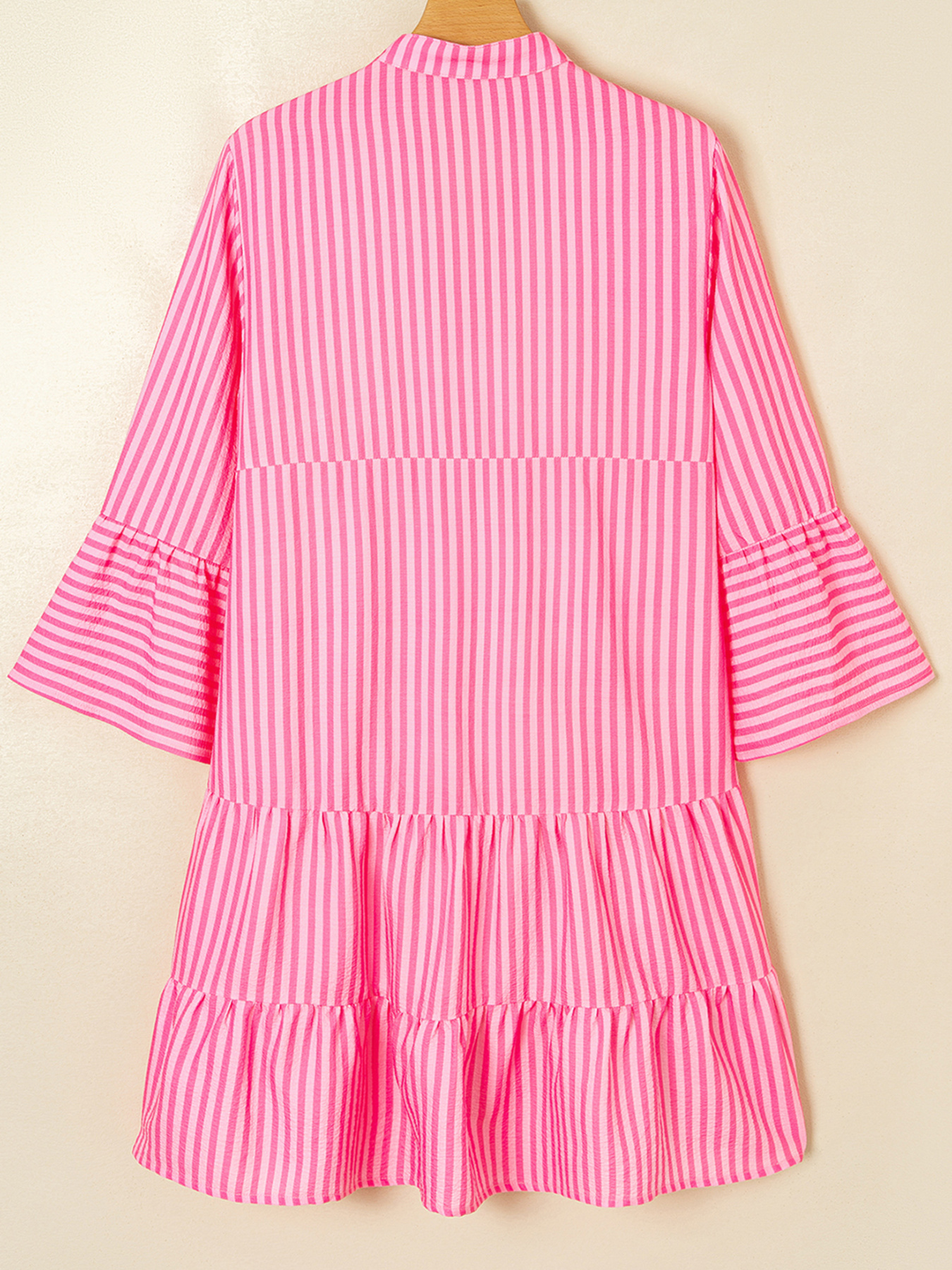 Stripe Flare Sleeve Half Placket Tiered Flowy Mini Dress