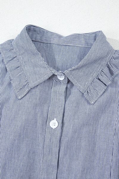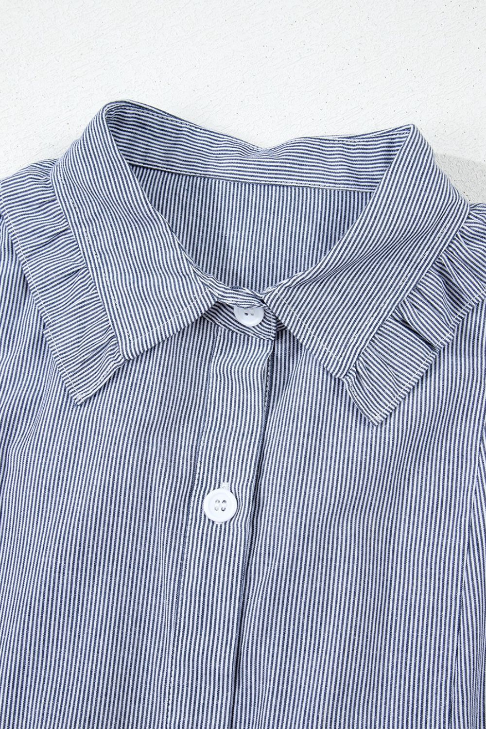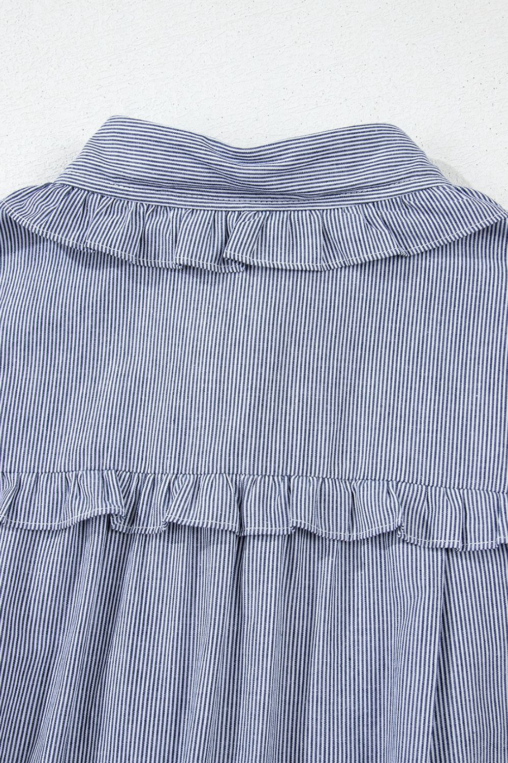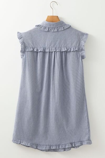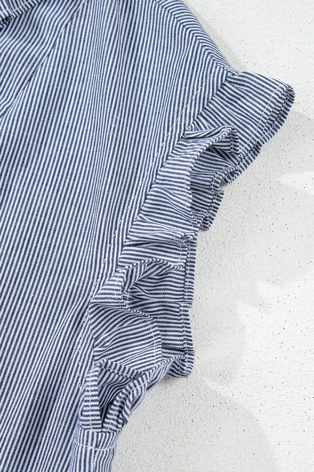 Stripe Frilled Ruffled Cap Sleeve Button Up Mini Dress