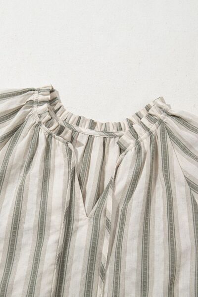 Stripe Frilled Tie Neck Short Sleeve Blouse