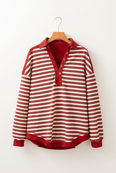 Stripe Johnny Collar Drop Shoulder Sweatshirt