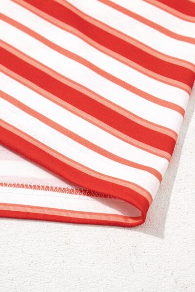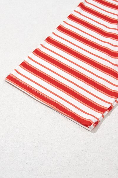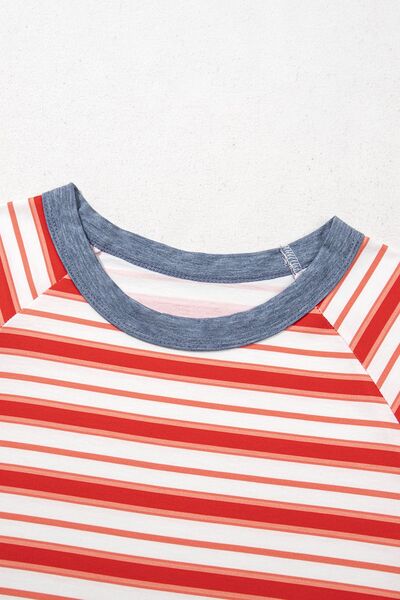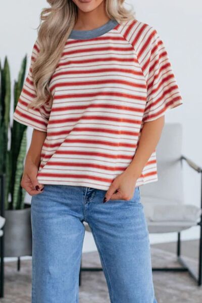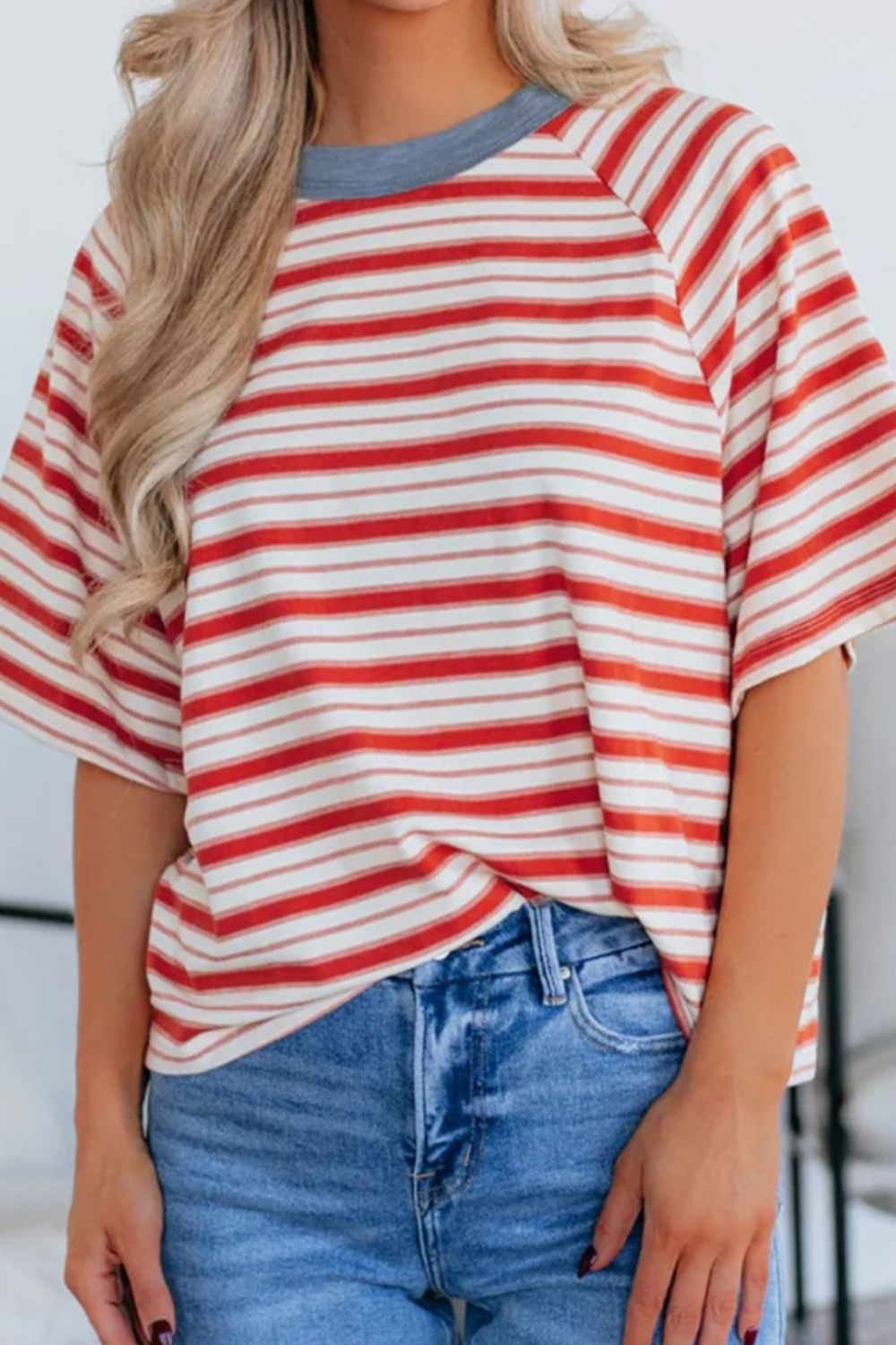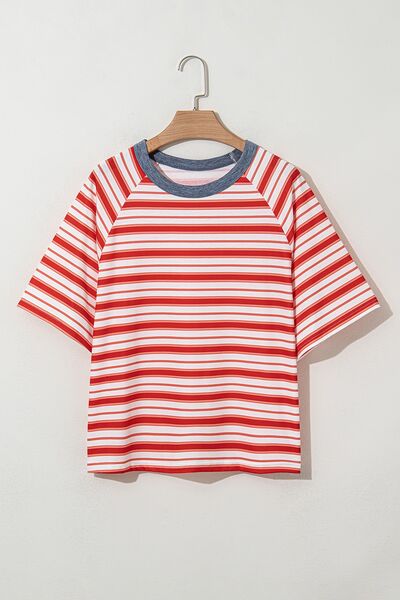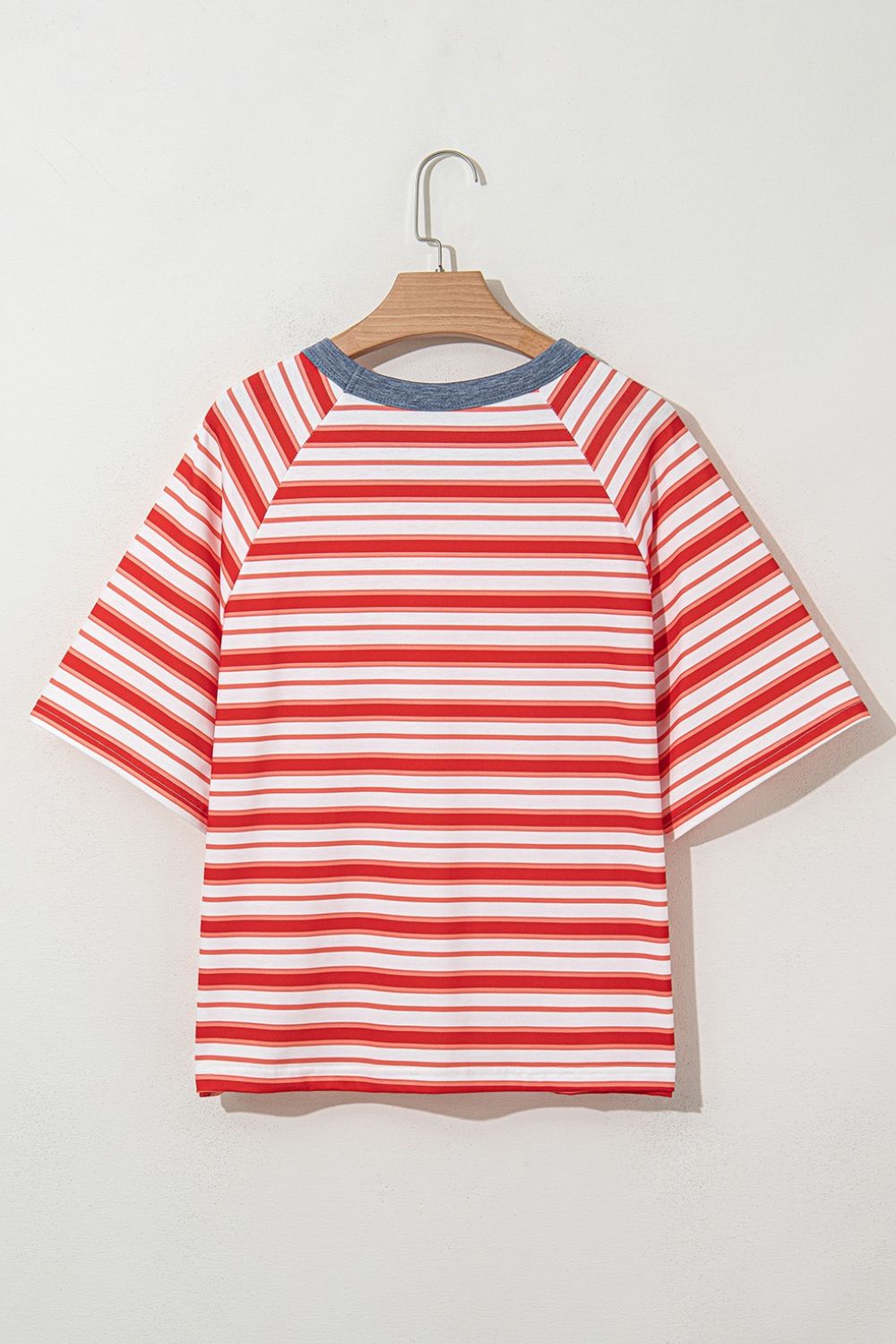 Stripe Print Contrast Collar Raglan Sleeve T Shirt